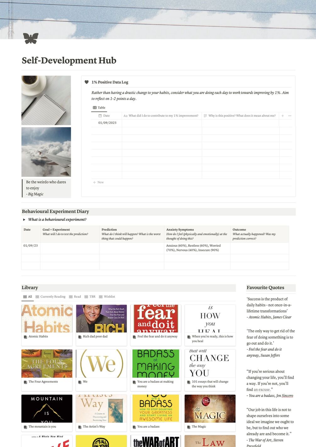 3. Self-Development Hub: Unleash your potential for growth. Record daily victories with the '1% Positive Log,' embark on self-improvement journeys with the 'Experiment Diary,' and build your digital library for self-development books with note-taking and favorite quotes.