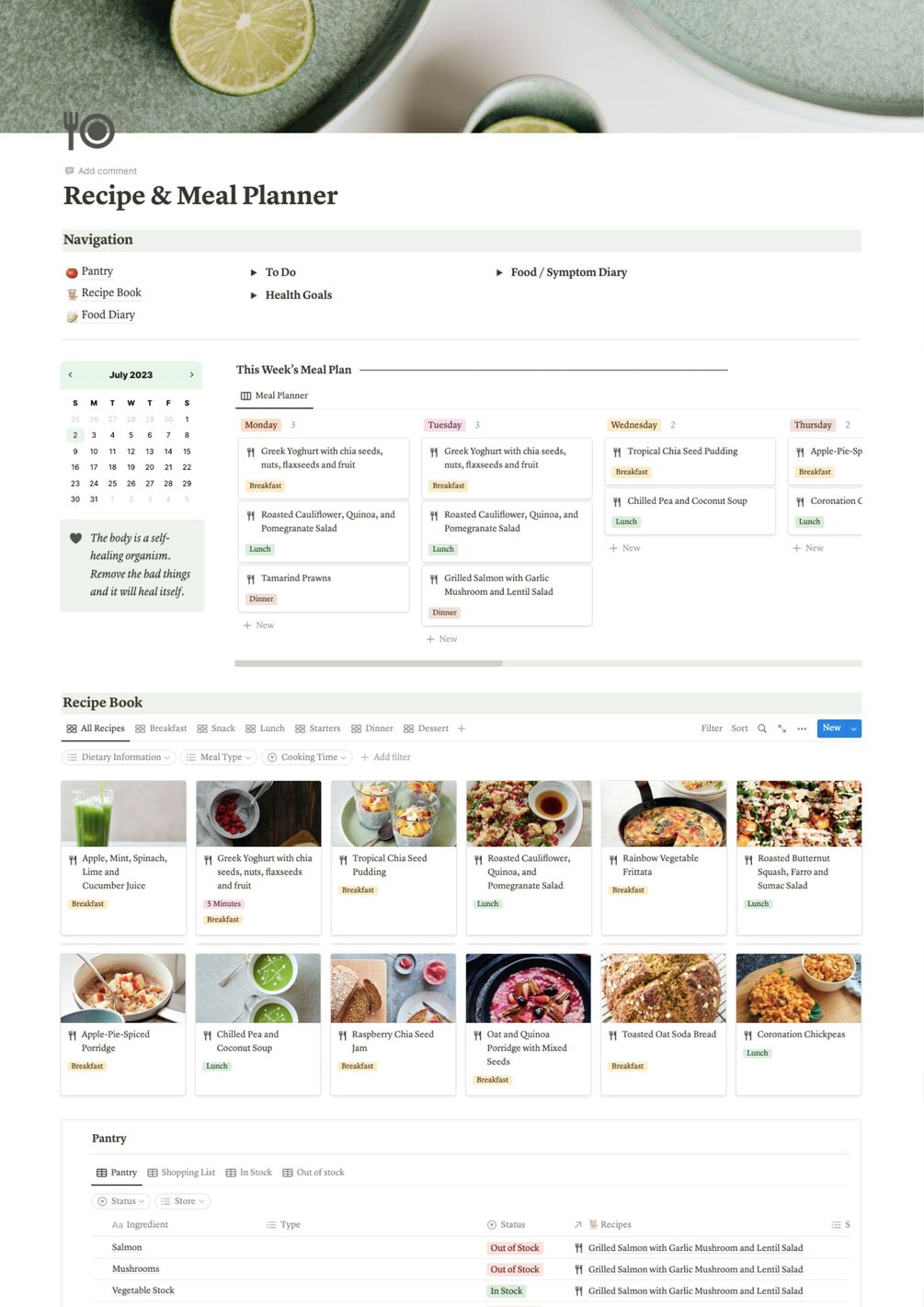2. Meal Planner & Food Diary: Say goodbye to mealtime stress. Plan your meals with ease, track your pantry items efficiently, and generate smart shopping lists based on your meal plan. Also included is a handy food and symptom diary which will allow you to track your meals and monitor how different foods affect your body.